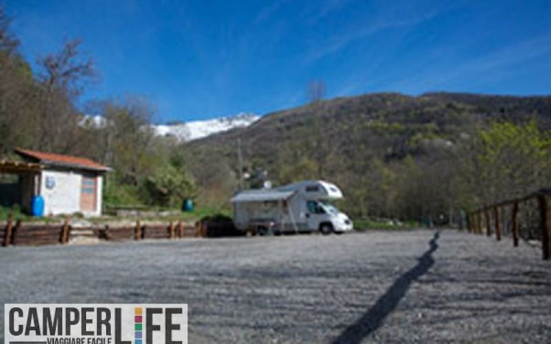Area per la sosta di sei camper e caravan presso Riserva la Regina, su ghiaia con servizi annessi. Ottima per passeggiate e pesca alla trota. Apertura stagionale (28 marzo - 31 ottobre).