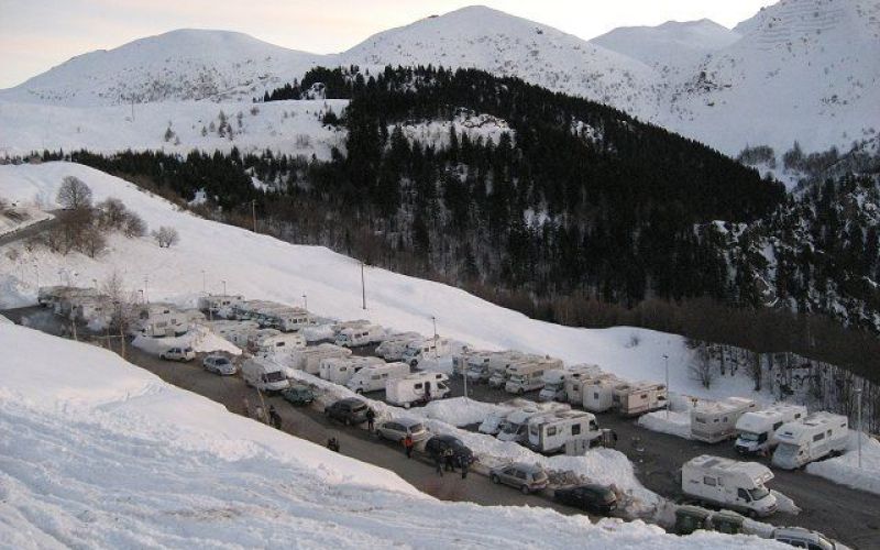 L'area camper si raggiunge entrando in paese e prendendo la prima strada a destra verso il Borgo Stalle Lunghe, superato questo la si trova subito a destra. È in piano e su fondo in asfalto, è strutturata su due spiazzi, ognuno con sbarra automatica. Molto soleggiata, panoramica, offre camper service ed elettricità inclusa. In quanto in pochi minuti si raggiungono a piedi le piste da sci e il Residence con Centro Benessere e servizi igienici.