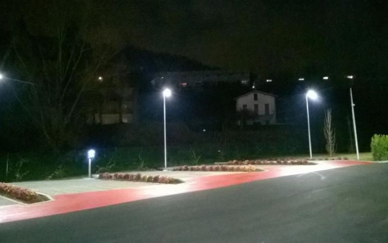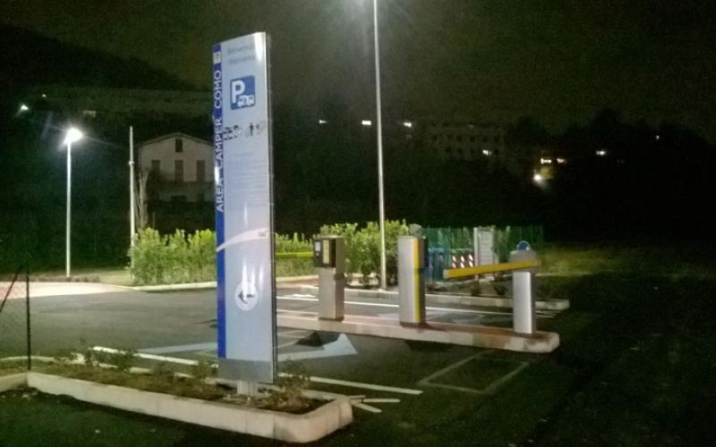 Area camper vicino al campo di calcio e all'entrata dell'autostrada svizzera. Accesso con sbarra; sosta, carico energia e acqua, scarico, a pagamento secondo consumo.