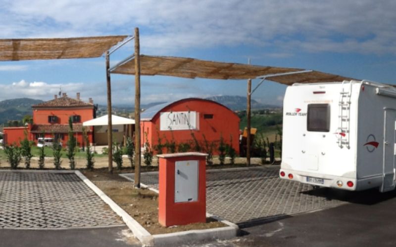 Area attrezzata presso la Tenuta Santini, dispone di 10 posti camper su fondo in erba. Possibilità di usufruire dei servizi della tenuta quali visite guidate in cantina-vigneti, assaggi degustazioni e acquisto prodotti tipici. Accesso roulotte consentito previa comunicazione telefonica. Apertura stagionale (chiusura dal 31/10 - su richiesta nei mesi di chiusura).