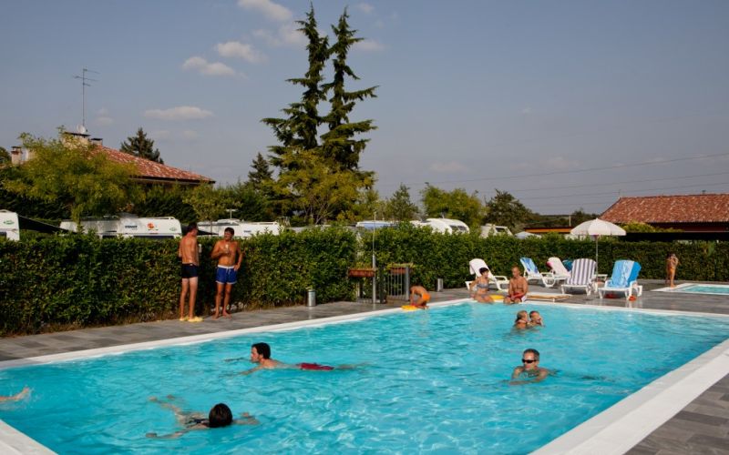 Dispone di 12 aree attrezzate di 60 mq. su prato e grigliato anti-affondamento, con illuminazione, attacchi per la corrente elettrica e acqua. L'Agricamping Tre Colline mette a disposizione dei propri clienti servizi igenici con sanitari, lavatoio e docce oltre alla possibilità di scaricare il wc dell'automezzo. Offre la possibilità di usufruire di un punto di degustazione e ristoro con piccola offerta di piatti freddi a base di salumi e formaggi, preparati al momento. Servizi compresi nel prezzo: uso dei servizi igienici con doccie e lavelli con acqua calda; allacciamenti all'acqua potabile e all'energia elettrica; uso della piscina e del carico e scarico dell'acqua; zona giochi bambini; barbecue. Centro benessere su richiesta. Chiuso a gennaio e febbraio.