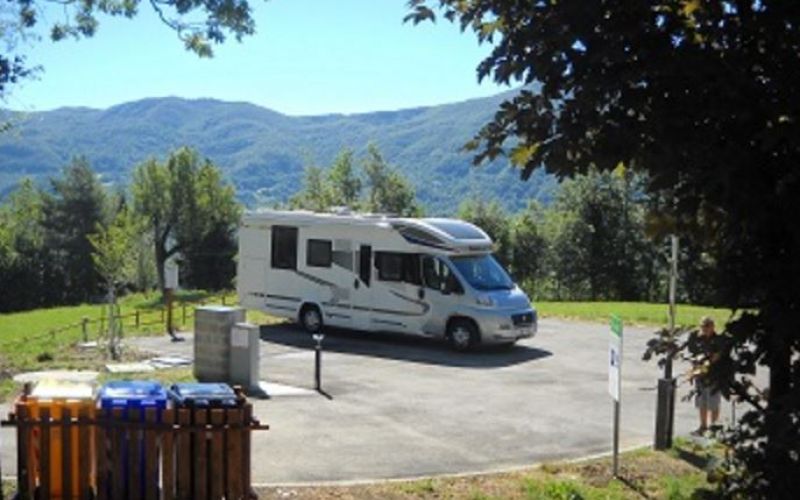Area comunale con 4 stalli, ingresso con sbarra manuale. Le chiavi si possono avere versando la quota giornaliera di 10 € e una cauzione di 5 € presso l'Alimentari Silvia, chiuso nei pomeriggi di mercoledì e domenica. La corrente elettrica è distribuita da una torretta a gettoni. Sosta max 72 ore.