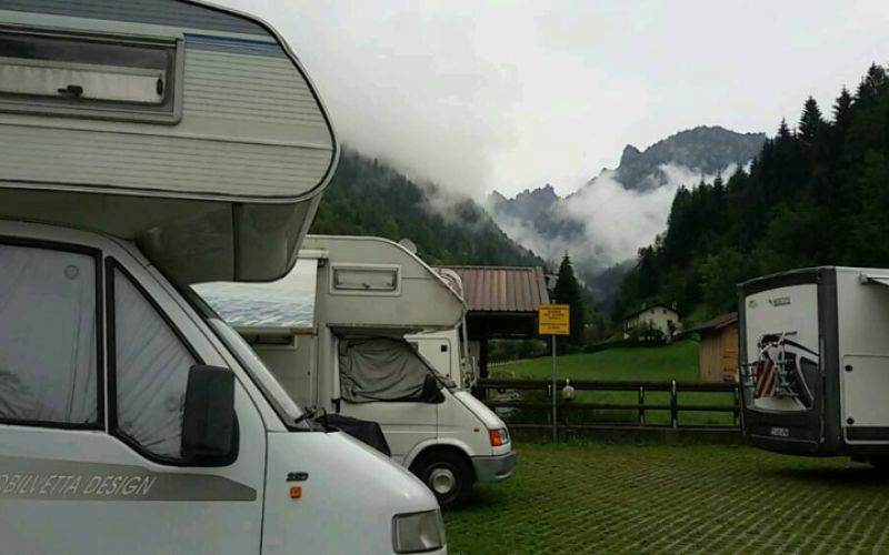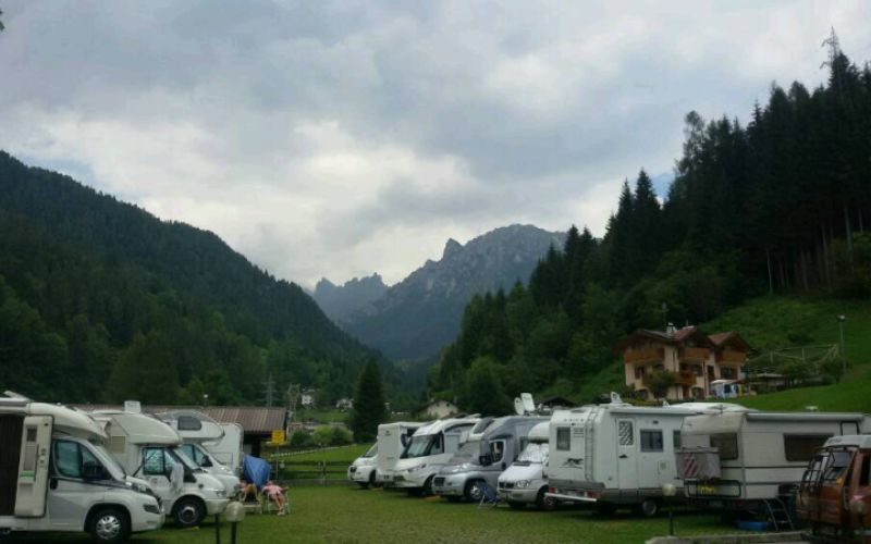 L'area attrezzata comunale, dispone di 42 piazzole per camper su erbablock. Apertura annuale. A breve distanza si trova la fermata dello skibus in inverno e del bus navetta estivo per la Val Canali.
