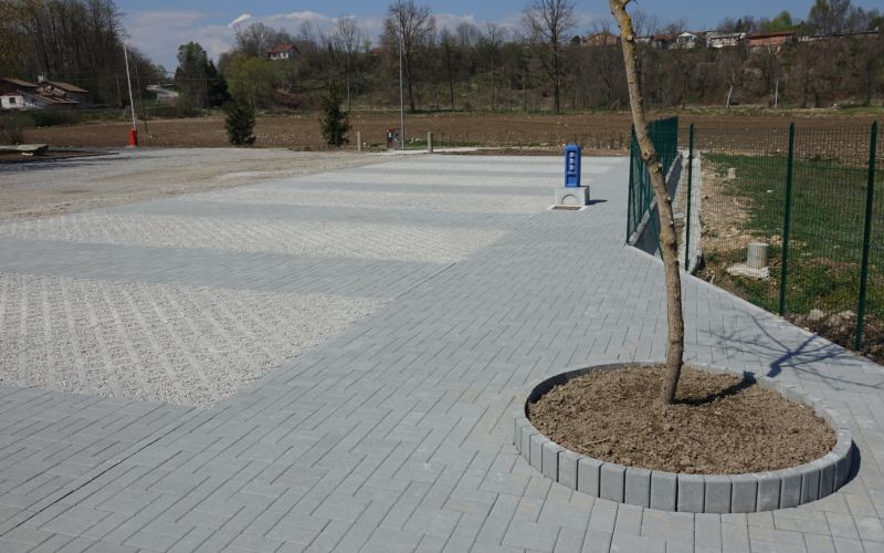 Area Attrezzata Libera Comunale con 20 stalli su grigliato e mattonelle, attacchi luce carico e scarico, situata nei pressi dell'entrata dell'oasi Naturale Crava-Morozzo del parco Alpi Marittime, vicina al Borgo Antico di Rocca de' Baldi con il suo museo etnografico A. Doro presso il castello visitabile dal 25 Aprile al 31 Ottobre. Nella vicina Fr. Crava altro museo privato " La Cantina " , passeggiando nella frazione si possono vedere numerosi Murales Naturalistici. Un' altro percorso della " Preghiera Dipinta " con visite alla cappella di S. Rocco, ( Sec. XV ) della Crocetta ( Sec. XV-XVI ) e a pochi km. Santuario del Bricchetto a Morozzo ( Sec. XV ) . Area situata in un parco, i cani sono ammessi al guinzaglio e museruola.