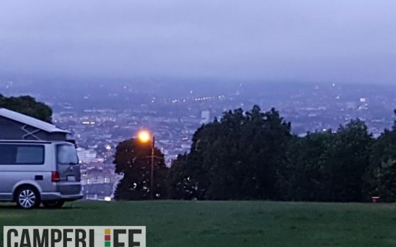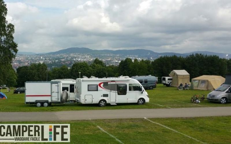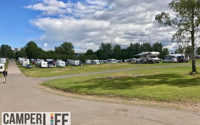 Camping con vista sulla città, con circa 600 piazzole per camper, caravan e tende, su ampio prato. Accesso possibile tra le 7 e le 24. Aperto da giugno ad agosto.