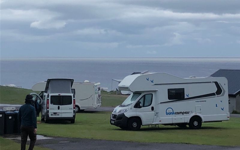 Campeggio sulla scogliera con 58 posti su erba e ghiaia.