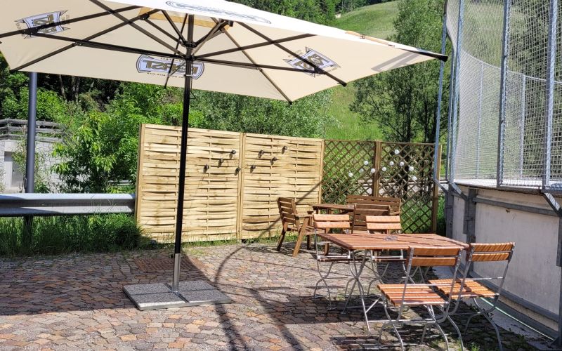 Nuovo parcheggio per camper, docce, Wc' s e Wc svuotamento disponibile. A pochi passi dalla fermata dell’autobus. Parco giochi per bambini, pista da bowling, darts e kicker sono accanto. Bar e ristorante direttamente vicino al parcheggio. Anche gli animali sono i benvenuti da noi.