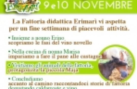 L'Agrifattoria didattica Erìmarì organizza "Castagne e vino novello in fattoria" a Orte (VT) - 9 e 10 novembre 2013 L'Agrifattoria didattica Erìmarì, a Orte (VT) voc. Lucignano n.11, nei giorni 9 e 10 Novembre 2013 ha organizzato l'evento convivial...