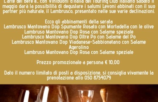 Sabato 11 Maggio ore 18,30 Saperi e sapori di-vini: degustazione salumi Levoni e Lambrusco