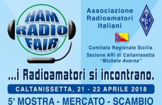 HAMRADIOFAIR 2018La sezione ARI M.Averna di Caltanissetta col patrocinio del Comitato Regionale Sicilia organizza il prossimo 21 e 22 aprile HAM RADIO FAIR 2018 nella consueta cornice della Fiera di Sicilia a Caltanissetta.L'evento non vuole esser...