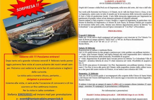Ospiti di Laika e del Comune di Impruneta nella terra del cotto, del vino e dell'olio.Visiteremo l'azienda dove nascono le nostre casette a quattro ruote e trascorreremo un piacevole weekend alla scoperta di artigianato, arte e gastronomia sui verd...