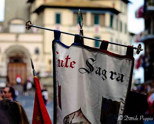 Ore 21,30 Manifestazione a cura dell'Ente Sagra: Esibizione del Gruppo Storico Spadaccini del Rione Rocca e del Gruppo Sbandieratori e Musici della Nobile Contrada Trinità (Piazza V. Emanuele II) Ingresso tribune 3;00 €