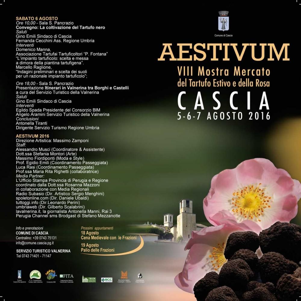 Per gli amanti del tartufo l’appuntamento è da venerdì 5 a domenica 7 agosto, con “Aestivum”, VIII mostra mercato del tartufo estivo e della rosa.