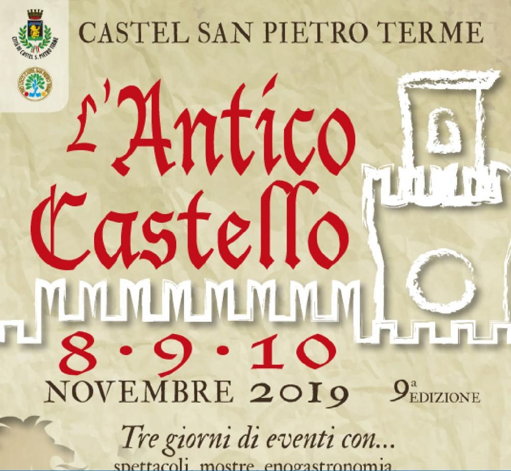 CASTEL SAN PIETRO TERME . NONA EDIZIONE, ANTICO CASTELLO. 8 - 9 - 10 NOVEMBRE 2019. Tre giorni di eventi con : Spettacoli, Mostre,Enogastronomia, Escursioni nel territorio, Giochi antichi,Arcieri, Falconieri e mercatini a tema.