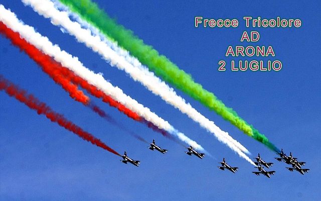 Prima dell’esibizione delle pattuglia acrobatica delle FRECCE TRICOLORI ci saranno Air show con piloti acrobati, elicotteri, voli di aerei storici, idrovolanti e altre sorprese. Alle 15.30 in punto la PATTUGLIA ACROBATICA che per l’occasione come ha detto il Presidente dell’Aeroclub d’Italia Giuseppe Leoni ad Arona eseguirà in una delle poche volte non sul mare l’INTERA sua esibizione.