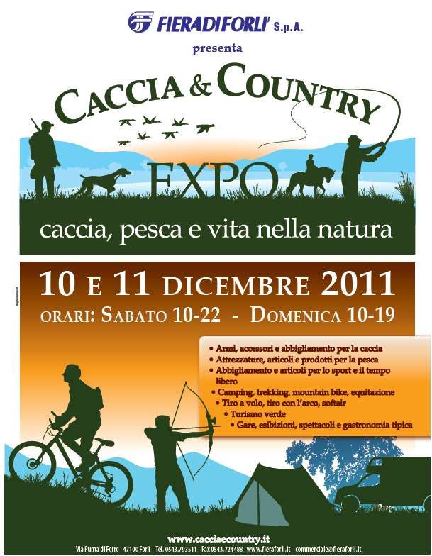 Fiera di Forlì ha il piacere di presentarVi Caccia & Country EXPO, l’evento in programma il 10 e 11 dicembre 2011 presso il nostro quartiere fieristico, dedicato ai professionisti e agli appassionati del mondo della caccia, della pesca, dello sport e della vita nella natura.