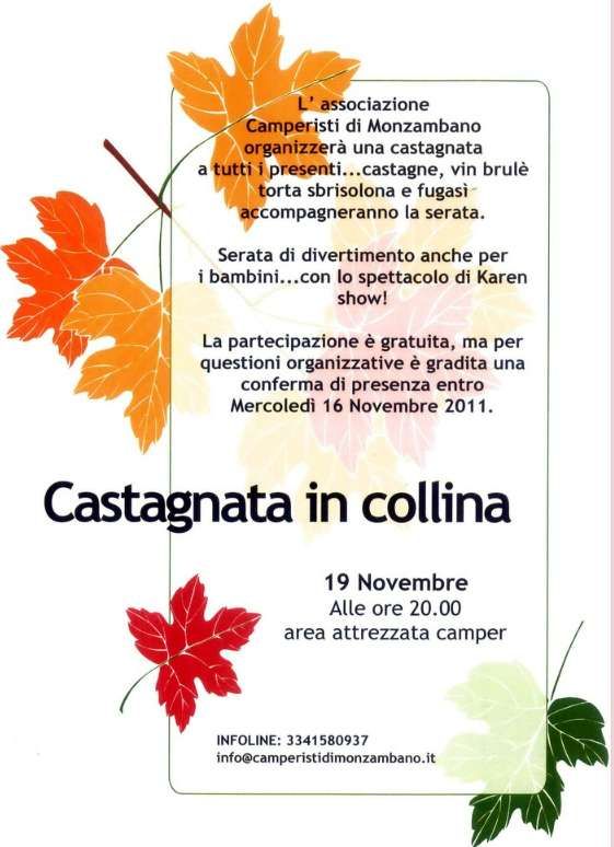 Sabato 19 Novembre 2011 alle ore 20.00, presso l'area attrezzata camper di Monzambano, l'Associazione Camperisti di Monzambano organizzerà una castagnata per tutti i presenti.
