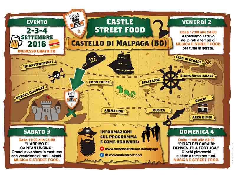 Il Castello di Malpaga di Cavernago (BG) ospiterà il prossimo appuntamento gastronomico di Castle Street Food, che sarà caratterizzato dal tema piratesco. Il programma prevede un weekend intenso e ricco di attività gratuite per i partecipanti.