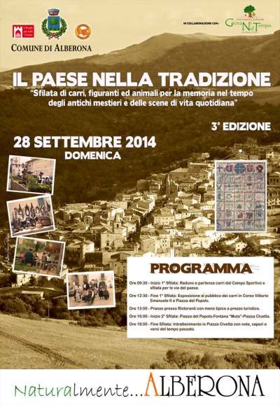 C’è anche Alberona tra gli 80 paesi italiani in cui, domenica 28 settembre, si celebrerà la Festa Nazionale Plein Air, appuntamento dedicato agli amanti dello slow tourism, il turismo attento ai tesori dell’entroterra italiano. In occasione di questo importante avvenimento, domenica 28 settembre, ad Alberona si svolgerà la terza edizione de “Il Paese nella tradizione”. Il Comune di Alberona, in collaborazione con l’associazione culturale “Giovani nel Tempo”, ha organizzato un’intera giornata incentrata sulla riscoperta delle tradizioni. Il programma degli eventi comincerà alle 9.30 del mattino, con la prima sfilata di carri, figuranti e animali che rappresenteranno i mestieri e le arti di un tempo. I costumi, gli strumenti e i saperi della civiltà contadina saranno il tema di una manifestazione che apre una finestra sul grande patrimonio materiale e immateriale della gente dei campi e del ciclo delle coltivazioni. Alle 12.30, prenderà il via la seconda parte della sfilata e dell’esposizione dei carri. Alle ore 13, i visitatori avranno la possibilità di pranzare nei ristoranti convenzionati dove saranno proposti menù turistici basati su piatti e prodotti della tradizione alberonese. Nel pomeriggio, a partire dalle 16, avrà inizio la seconda sfilata dei carri. Dalle ore 18 in poi, Piazza Civetta sarà animata da stand gastronomici, musica e poesie in vernacolo. Sarà una vera e propria festa d’autunno, caratterizzata dai frutti che segnano l’arrivo della nuova stagione. Per i turisti, “Il Paese nella tradizione” sarà un’occasione per scoprire Alberona, un borgo di poco più di mille abitanti, situato a circa 30 chilometri da Foggia, al quale il Touring Club Italiano ha assegnato la Bandiera Arancione. L’Anci ha riconosciuto il paese come uno dei “Borghi più belli d’Italia”. Alberona appare come ‘aggrappata’ al Monte Stilo, a 732 metri sul livello del mare e si annuncia alla vista come un presepe. I carri del 28 settembre sfileranno davanti a tutti i principali luoghi d’interesse storico e culturale. Il primo monumento che s’incontra salendo verso il paese è la Fontana Muta. Dal 1824, quest’oasi di ristoro “parla” attraverso l’eterno scrosciare dell’acqua. Più avanti, il Muro Architettonico racconta come l’arte e l’amore possano modellare anche la pietra, facendole trovare le forme della grazia e della bellezza. Pochi passi ancora e in alto, sulla sinistra, s’intravede il monumento al Tenente Andrea Nazzaro, eroe della Resistenza al terrore nazifascista. Il Muraglione sale fino alla terrazza panoramica dove la vista domina tutto il Tavoliere. Il cuore del borgo è a pochi metri, in Piazza Civetta. La Chiesa di San Rocco svetta con la sua facciata gotica e la cuspide conica del campanile. Facendosi accompagnare dalla discesa che si stende ai piedi dell’edificio sacro, si arriva alla storica abitazione di Vincenzo d’Alterio, uno dei poeti che ha contribuito a fare di Alberona un piccolo borgo dalla grande tradizione letteraria. Qualche metro più in là e, all’ombra del monumento ai Caduti, si apre lo scrigno dell’Antiquarium, un museo che raccoglie le antiche testimonianze della storia alberonese. Nei pressi dell’Antiquarium c’è la Chiesa Madre o Priorale, un tempo dimora dei cavalieri Templari.