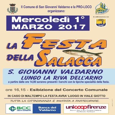 Mercoledì 01 Marzo, a partire dalle ore 14.00 nella golena del Fiume Arno (altezza Via F. Cervi), giunge un classico appuntamento con la “Festa della Salacca”, con la partecipazione del Concerto Comunale di San Giovanni Valdarno.