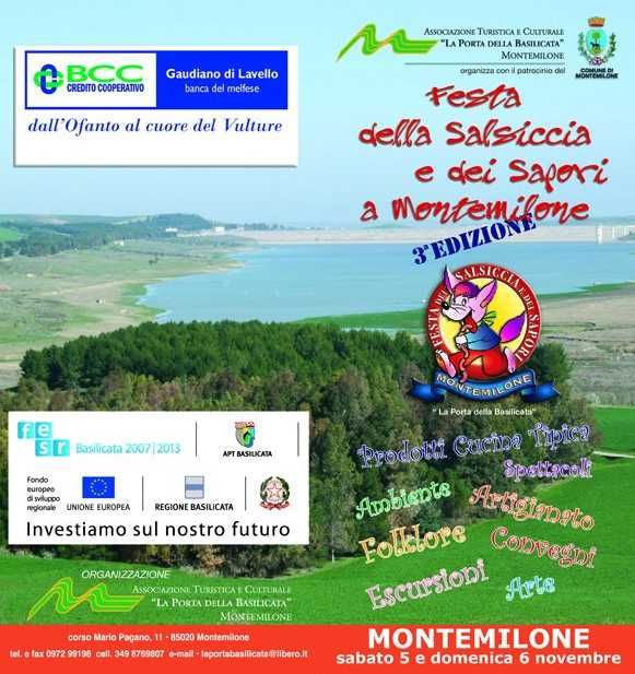 Basilicata 23 Marzo 2014 Festa della Salsiccia e dei Sapori a Montemilone (Pz) 04/11/2011 - 05/11/2011 Basilicata La migliore salsiccia del sud Italia, festeggiata a Montemilone (Pz)