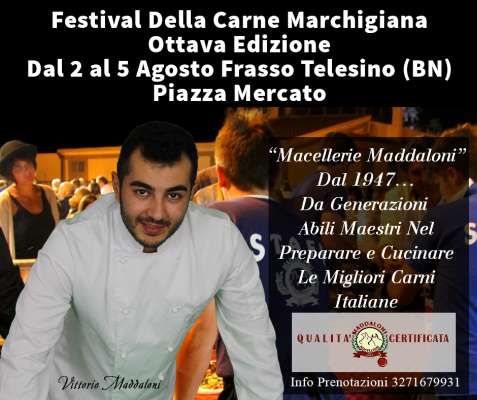 Il “Festival della Carne Marchigiana IGP” giunge alla sua 8^ edizione e si svolge a Frasso Telesino in Piazza Mercato dal 2 al 5 agosto.