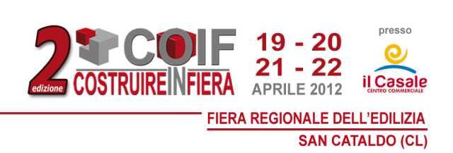Dopo il grande successo dell’edizione 2011, quest’anno torna il “COIF: Costruire in Fiera”, l’unico salone dell’edilizia civile e industriale in Centro - Sicilia, che si svolgerà a San Cataldo, presso il Centro Commerciale “Il Casale” nei giorni 19, 20, 21 e 22 aprile 2012.