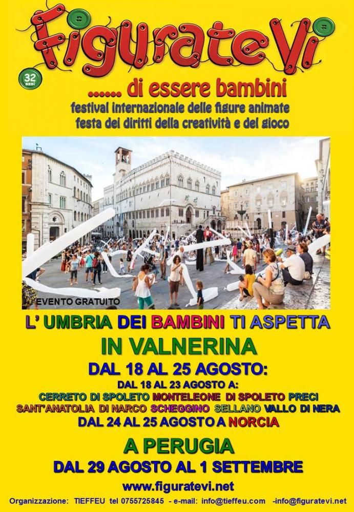 Il Festival "Figuratevi... di essere bambini", giunto alla sua 32° edizione, quest’anno presenta importanti novità, inizia con una edizione speciale a Norcia (24 e 25 agosto) e in altri comuni della Valnerina (Preci, Sellano, Cerreto, Monteleone, S. Anatolia di Narco, Scheggino e Vallo di Nera) dal 18 al 23 agosto 2019 e continua a Perugia dal 29 agosto al 1 settembre 2019.