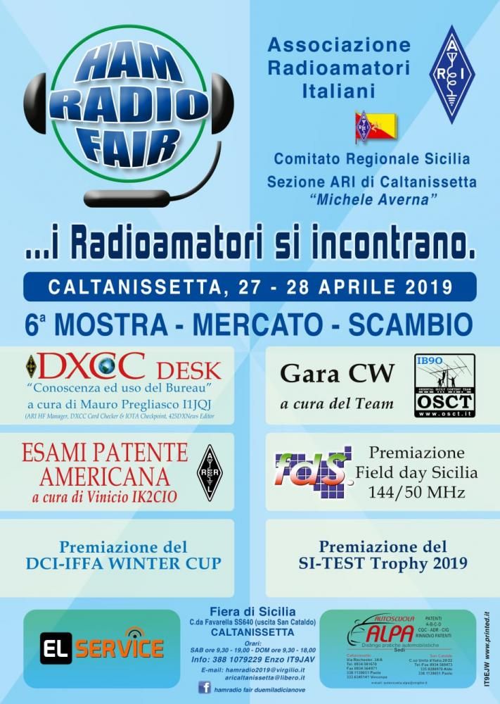 La sezione ARI M.Averna di Caltanissetta col patrocinio del Comitato Regionale Sicilia organizza il prossimo 27 e 28 aprile HAM RADIO FAIR 2019 presso la Fiera di Sicilia a Caltanissetta.
