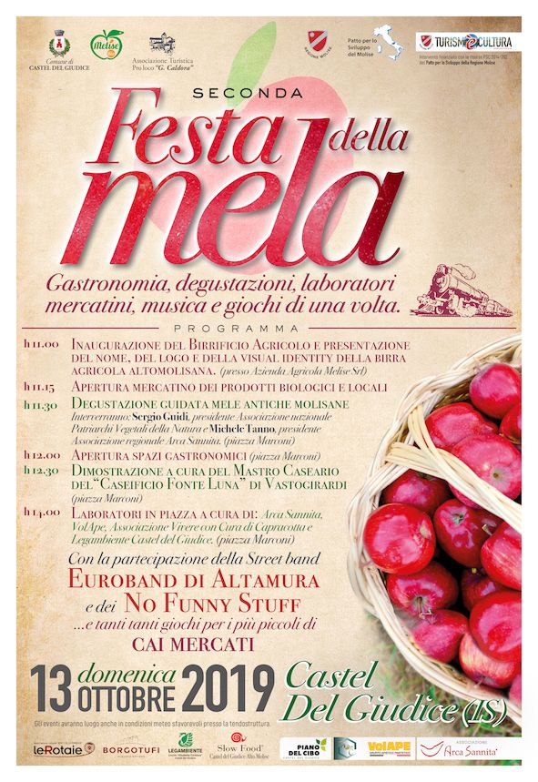 La Festa della Mela rientra nel programma “Turismo è Cultura” della Regione Molise e tra le iniziative del Piano del Cibo di Castel del Giudice, che prevede azioni relative al sistema agroalimentare locale all’insegna dell’ecologia, la riduzione degli sprechi alimentari e lo sviluppo sostenibile.
