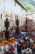 Ogni anno il 15 Maggio si svolge la tradizionale festa dei Ceri a Gubbio in Umbria antica rievocazione storica dove arditi ceraioli sorreggono e trasportano correndo all'impazzata alti ceri raffiguranti i tre santi protettori delle corporazioni della città. La manifestazione si svolge sulle inerpicate viuzze del paese rese ancora più anguste dalla folla che le riempe in occasione della corsa. Un'esperienza unica tra antico folclore cristianità e tradizione.