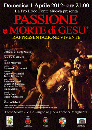 Non è una rassegna di canti quaresimali tradizionali, né un collage di brani tratti dal repertorio classico, nè un semplice teatro in strada. Si tratta di una manifestazione molto sentita, che incarna tutta la fede degli abitanti di questo piccolo comune alle porte di Roma. La sacra Rappresentazione a Fonte Nuova è infatti “fatta in casa”. Gli abitanti per una notte diventano protagonisti della processione del Venerdì Santo che assume da molti secoli a questa parte e in numerose città d'Italia, soprattutto centro-meridionali, un ruolo tipicamente teatrale. Il 1 aprile alle 21 in Via 2 giugno si terrà la XV edizione della Rappresentazione Vivente della Passione e Morte di Gesù.