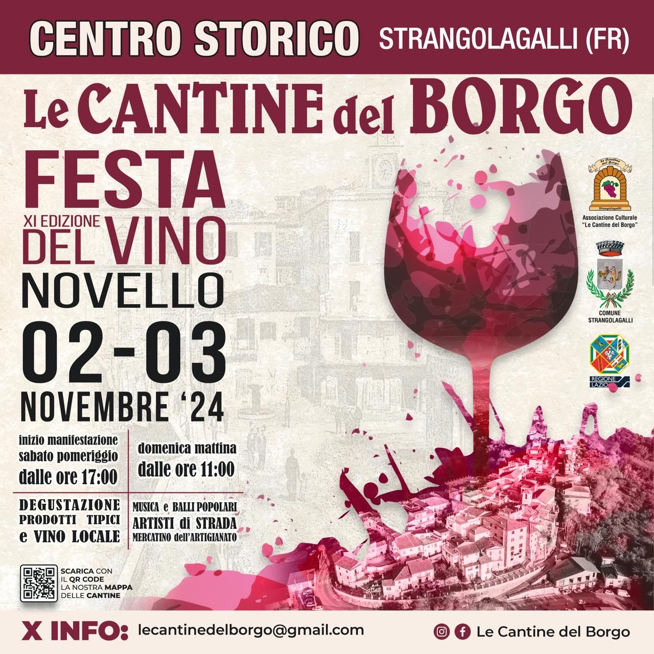 Strangolagalli (FR), 14/10/2024 - Torna "Le Cantine del Borgo," un weekend indimenticabile all'insegna del buon vino e della gastronomia tradizionale. L'evento si terrà il 2 e 3 novembre 2024, tra le suggestive vie del centro storico di Strangolagalli, in provincia di Frosinone.