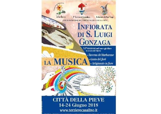 Un evento che - proprio nell’anno del Giubileo Straordinario in onore del Santo - si annuncia ancora più straordinario del solito e ricco di appuntamenti collaterali, che dal 14 al 23 giugno animeranno questo luogo magico: a Città della Pieve quello con l’Infiorata rappresenta da oltre mezzo secolo il primo appuntamento dell'estate, dove per l’occasione le lumache al pizzico e il cinghiale al dragoncello domineranno le tavole allestite per l’occasione. Già da diversi mesi i contradaioli sono al lavoro per la raccolta e la preparazione dei fiori da utilizzare nel momento clou della festa: il tema scelto per l’edizione 2018 dai maestri infioratori e realizzato dall'artista pievese Andrea Bittarello sarà “La musica”, un viaggio immaginario tra i volti più noti del panorama italiano e internazionale; le note faranno da filo conduttore dell’intero evento, perché sia nella notte di sabato 23 che nel pomeriggio di domenica 24 i visitatori saranno accompagnati lungo il percorso da armonie musicali.