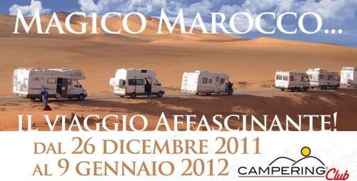 Dal 26 dicembre 2011 al 9 gennaio 2012, il raduno in Marocco organizzato dal Campering Club di Viterbo Un ricco programma per un capodanno da non scordare facilmente, è questo che stanno organizzando gli amici del Campering Club di Viterbo. Partenza e rientro sono previste da Genova per Tangeri via Barcellona e viceversa. Le iscrizioni, che al momento sono ancora aperte, chiuderanno il 26 novembre 2011. Per informazioni contattate il Campering Club alla casella email indicata nel box o chiamate telefonicamente il sig. Dario Fiorilla (3498410109) Per il programma dettagliato, le note operative e le quote di partecipazione scaricate il file in pdf disponibile sul sito web Campering.it (cliccare l'immagine qui sotto) |