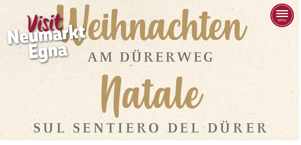 Nel periodo natalizio i portici medievali di Egna con le case in stile veneziano si trasformano in un paese natalizio. È infatti arrivato il momento del "Portico di Natale". Ogni fine settimana di dicembre potrai salire in una carrozza trainata da cavalli e immergerti in una fiaba. Visitare il centro storico di Egna. Apprezzarne i profumi. Emozionarti per gli incontri autentici con l'umanità di questo grazioso centro altoatesino. Visitare le botteghe. Acquistare i tuoi doni.
