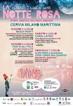 Il capodanno dell’estate a Cervia dura un lungo week end e propone vari eventi di grande emozione con 5, 6 e 7 luglio dedicati alla NOTTE ROSA della riviera romagnola. Appuntamento ormai consolidato e atteso propone la serata del 5 luglio con una notte di divertimento in città e sulla spiaggia. Gli stabilimenti balneari aperti propongono eventi che vanno dalle cene a lume di candela alla dance sulla spiaggia con la serata dedicata al “Beach Party. In piazza Garibaldi la festa sarà tutta dedicata alla tradizione dei balli popolari della Romagna. “That’s all Folk” il gioco di parole per indicare una serata in cui tutti balleranno sulla piazza, grazie alla complicità della notte e alla magia della festa che rende tutti protagonisti. Si lancerà anche una sfida coinvolgente che vuole come obiettivo l’anteprima di una gara da Guinness per numero di persone partecipanti contemporaneamente al ballo e ore di ballo consecutive. Alle 23.00 in piazzetta Pisacane si potranno gustare le pesche flambé con gelato realizzate “ in diretta” dalla associazione dei Maître di Ravenna lidi. Nella serata e in notturna si terranno inoltre una serie di iniziative particolari che di solito si svolgono solo di giorno come una visita alla Casa delle Farfalle oppure il percorso di tarzaning di Cerviavventura.