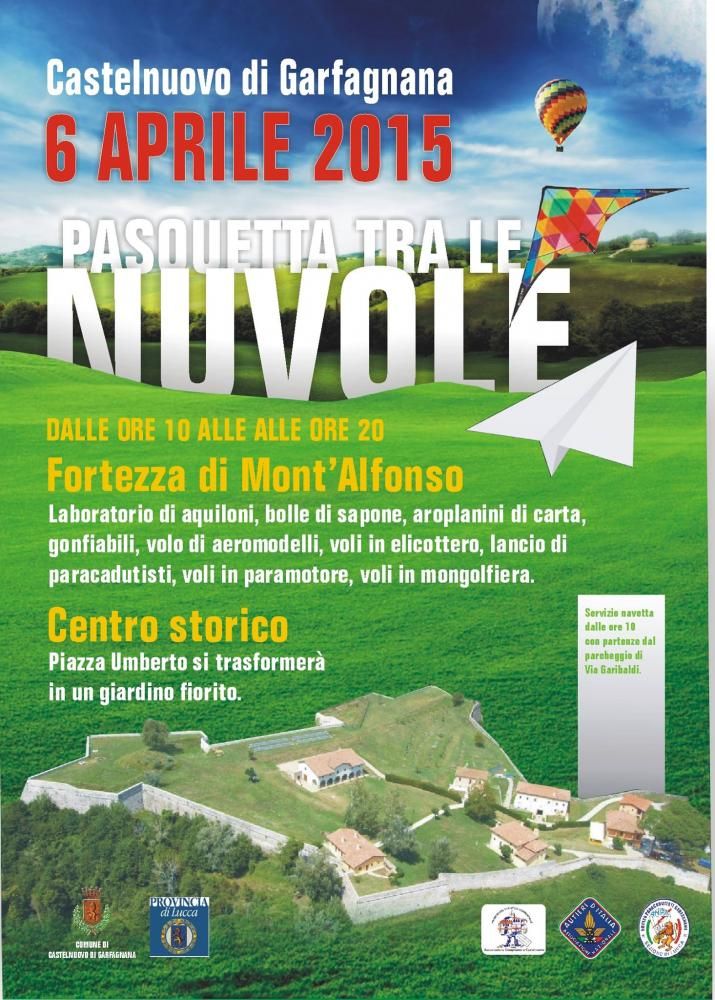 Via Garibaldi ospiterà un mercatino dell'artigianato e prodotto tipico locale fino al piazzale dove continuamente ci sarà un bus navetta che condurrà in Fortezza di Mont'Alfonso dove si terrà la festa del volo e dell'aria.