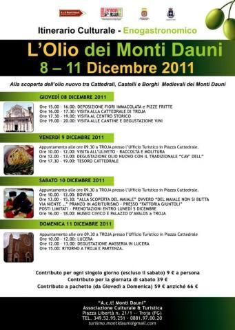 ►Dimostrazione della molitura delle olive e della produzione dell’Olio nuovo e degustazioni di “Cav’dell” presso e a cura dei frantoi di Troja e dei Monti Dauni.