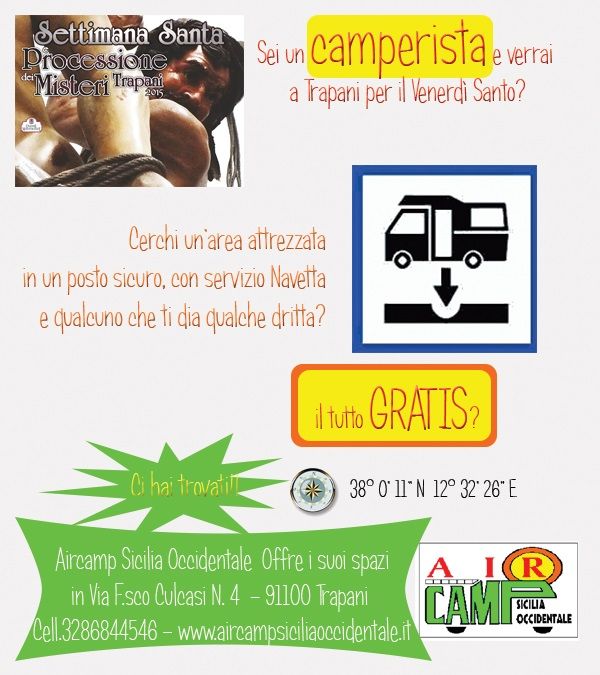 In questa occasione, l'Associazione Aircamp Sicilia Occidentale, accoglie gratuitamente gli amici camperisti presenti in città.