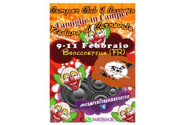 Parte ufficialmente la nuova stagione di raduni 2018. 9 Febbraio appuntamento per gli amici del Camper Club il Bassotto a Broccostella, provincia di Frosinone, dove grazie alla disponibilità di una nostra amica e alla collaborazione dell’ ”Associazione Città del sole” faremo base e festeggeremo in maschera nella serata di sabato 10 Febbraio per prepararci poi alla grande sfilata di carri dello storico Carnevale di Pontecorvo, che raggiungeremo domenica mattina con i nostri camper.