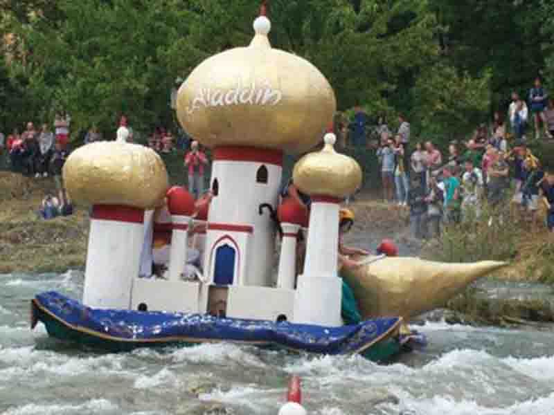 La mattinata seguente si potrà assistere al passaggio in città della gara ciclistica “Fausto Coppi” e, dopo un aperitivo offerto dalla sezione, si prenderà parte alla manifestazione centrale del raduno: la discesa del Maina con imbarcazioni rigorosamente autocostruite dalle forme più strane e stravaganti.