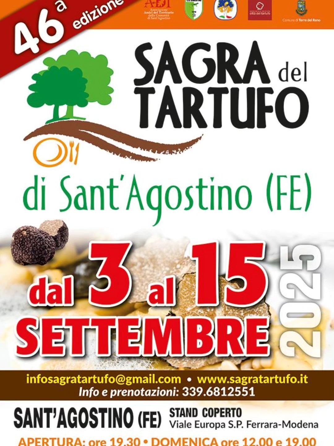 A Sant’Agostino settembre ha un profumo speciale: quello intenso e inconfondibile del tartufo. Dal 3 al 15 settembre torna la Sagra del Tartufo di Sant’Agostino, seguita in autunno dalla golosissima Sagra del Tuber Magnatum Pico nei weekend di novembre. Due appuntamenti imperdibili per chi ama i sapori autentici e vuole vivere un’esperienza che unisce tradizione, natura e convivialità.