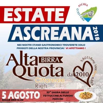 Giunta alla 32esima edizione, la festa più attesa dell’estate affonda le sue radici nella metà degli anni 80’, e iniziò quasi per gioco come una sorta di spaghettata fra gli abitanti del posto per la grande disponibilità di funghi porcini. Oggi, a tanti anni di distanza, migliaia di golosi sono pronti a mettersi in viaggio verso Ascrea, dove dalle 12 inizierà in una comoda tensostruttura coperta la distribuzione delle fettuccine fatte in casa, da accompagnare con bruschette, salsicce, fagioli e un buon bicchiere di vino del posto. L’intrattenimento sarà garantito dalla mostra degli attrezzi della civiltà contadina e dagli spettacoli di musica dal vivo, e a disposizione dei visitatori ci sarà un comodo bus-navetta per raggiungere il paese dopo aver parcheggiato lungo la strada provinciale; gli organizzatori hanno pensato anche a un servizio di bus-navetta “Camper Friendly”, con corse dedicate ai camperisti fino all’area sosta di Castel di Tora.