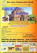 Nella cittadina arabo-normanna di Casalvecchio Siculo (ME), nella splendida valle d'Agrò a pochissimi chilometri da Taormina, nel territorio adiacente l'antica abbazia dei SS. Pietro e Paolo d'Agrò, perla unica dove l'arte normanna e l'arte araba hanno trovato una convergenza straordinaria, domenica 12 Maggio si svolge la Manifestazione Sapori, Arte e Folklore".