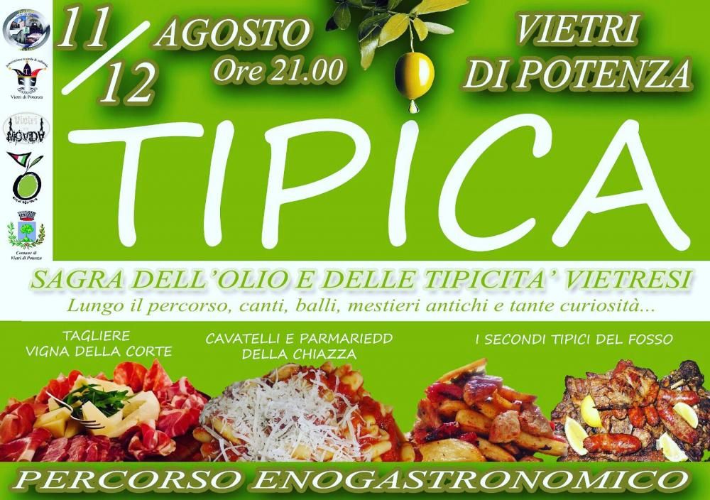 Tra le vie del centro storico potrete assaggiare "cauzon c' la mnestra", "ciambottola", "patat ross'", "strascinati cu la muddica", tutti piatti tipici della tradizione vietrese, anche se, il prodotto principe della festa, sarà l'olio, alimento fondamentale della dieta mediterranea.