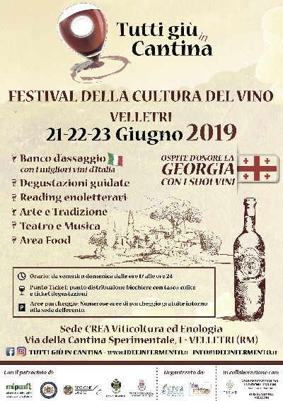 Sarà una quinta edizione più ricca che mai quella di “Tutti giù in cantina – Festival della cultura del Vino”, nel fine settimana che va dal 21 al 23 giugno. Dalle 17 a mezzanotte la sede CREA di via Cantina Sperimentale a Velletri (Roma) sarà nuovamente aperta per tutti gli appassionati che vorranno partecipare ad un evento dai mille volti. Gli organizzatori, il CREA e l’associazione “Idee in fermento”, si sono spesi per stilare un programma con grandi appuntamenti e iniziative adatte a tutti, degustazioni guidate di pregio e momenti di musica e arte. Si rinnova il respiro internazionale dell’evento con la partecipazione, come Paese straniero ospite, della Georgia che sarà presente con una rappresentanza diplomatica e ovviamente con i suoi vini. Un legame ancestrale quello della viticoltura europea con le tradizioni georgiane, qualcosa di incredibilmente profondo. La manifestazione quest’anno, a riprova di una crescita continua, ha ricevuto il Patrocinio del Ministero delle Politiche Agricole, Forestali e del Turismo (Mipaaft), dell’Ambasciata di Georgia, della Regione Lazio, del Comune di Ardea e ovviamente del Comune di Velletri. Le collaborazioni sono di alto livello, in particolare si conferma quella con i sommelier della Delegazione Fisar Roma e Castelli Romani, con la sezione Lazio-Umbria di Assoenologi (Aeei) e con l’AVIS Velletri.