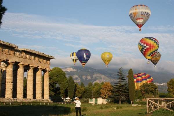Sesta edizione del raduno internazionale di mongolfiere di Paestum (Salerno), il più grande evento Aerostatico Sud Italia.  Una trentina di palloni multicolore, provenienti da tutt'Europa, coloreranno i cieli della costiera amalfitana da sabato 4 fino a domenica 12 Ottobre.