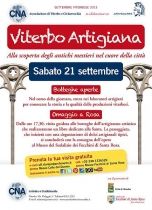 Il CNA di Viterbo e Civitavecchia, in collaborazione con Archeoares S.n.c., ha curato l'organizzazione di "Viterbo Artigiana – Alla scoperta degli antichi mestieri nel cuore della città", una visita guidata alle botteghe dell'artigianato artistico che si terrà sabato 21 settembre 2013 e che ha lo scopo di aiutare i partecipanti a conoscere la storia e la qualità delle produzioni viterbesi.