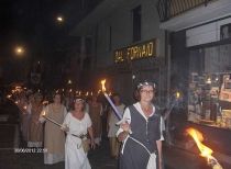 A seguire, sul sagrato della settecentesca Chiesa parrocchiale ( autentica pinacoteca barocca nella quale hanno lavorato i migliori pittori Sabaudi e visitabile per l’ occasione compresi i tesori della sacrestia) la rievocazione della storica battaglia avvenuta tra guerrieri Franchi e Longobardi su finire dell’ ottavo secolo. Uno spettacolo carico di emozioni dove nella penombra appena illuminata dalle antiche fiaccole, l’immaginazione dello spettatore sarà stimolata in un crescendo di coreografie, suoni e voci.